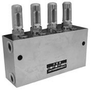 一、使用条件 适用于公称压力为20MPa的双线式集中润滑系统作为一种计量给油装置,它在两条供油管交替的供油压力作用下,直接由供油压力推动活塞给油,完成向各润滑点定量分配润滑脂的功能。 SDPQ-L系列单向出油分配器给油口都在底部,分配器活塞正反向动作均从同一个给油口排油,系统每工作一次,各给油口均排油一次。 SSPQ-L系列双向出油分配器正面和底部均有给油口,分配器活塞正反向动作分别从正面和底部的给油口排出润滑脂。相对于SDPQ 型分配器给油口成倍增加,正面右位给油口下预制一,二口合并为一口的螺塞,易改为奇数出油,使用系统配管简单。SSPQ-L2、3、4三种系列的分配器,同样给油口数的外形安装尺寸相同,易于型号变更替换方便。 该系列分配器可以从指示杆的动作直接观察分配器的工作情况,还可通过调整螺钉在规定范围内方便地调整各个给油口的给油量。