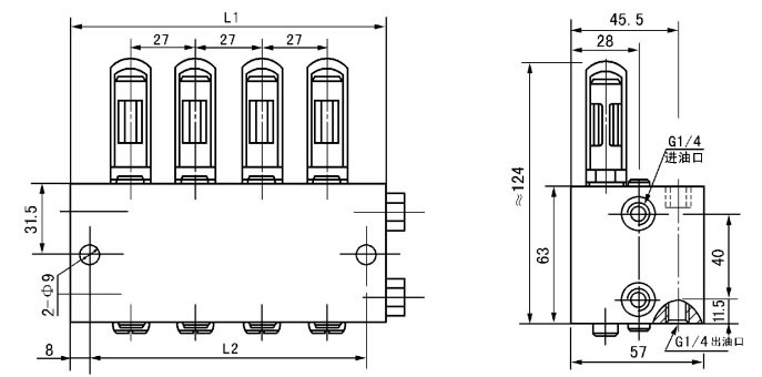 一、使用条件 VSKH-KR型双线分配器上下面均有出油口,分配器活塞正反向动作时分别从上面和下面的出油口排出润滑脂。还可以从指示杆的动作直接观察分配器的工作情况,同时还可通过调整螺钉在规定范围内,调整出油口的给油量。 分配器适用于公称压力为40MPa的双线式干油集中润滑系统中。它在两条供油主管交替的供油压力作用下,直接由供油压力控制活塞动作给油,完成向润滑点定量分配润滑脂的功能。