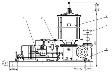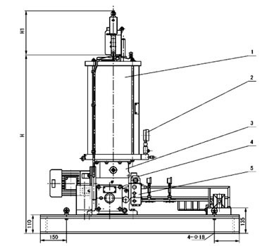 1 - 压力表;2 - 压力表;3 - 贮油器;4 - 电动机;5 - 电动润滑脂泵