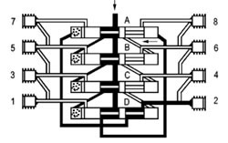 一、使用条件 SSV系列单线递进式分配器适用于公称压力为30MPa以下的单机或小型干稀油单线集中润滑系统中。它靠壳体内部的活塞将由入口输入的润滑剂以预定的量可靠地和强制性地分配。该型分配器左右两侧均有吐出油口,不同吐出口数的安装尺寸相同,吐出口派生合并增大给油量与手动、气动或电动润滑泵相连接可组成简单,费用低廉的小型集中润滑系统,也可与大型集中润滑系统中的单线或双线分配器连接作为辅助分配器进行二级分配。