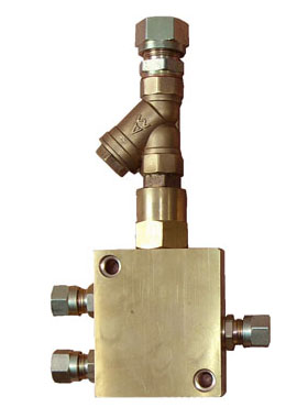 2、油气分配器适用于公称压力为0.6MPa油气润滑系统中, 它的作用是把从油气混合块中输送过来的油气定量地均匀分配到各个摩擦点。